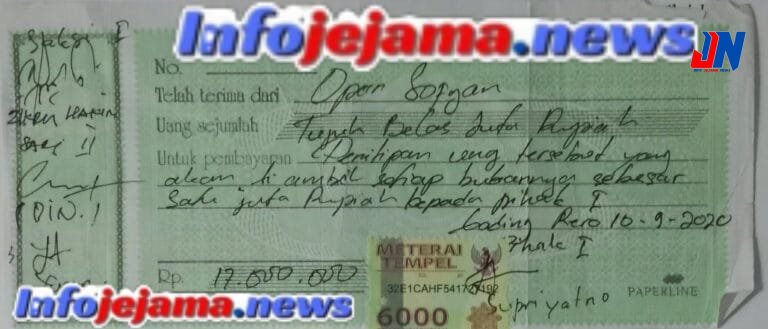Infojejama.news/Pringsewu – Dugaan modus manipulasi dalam urusan hutang-piutang kembali mencuat, kali ini menyeret nama istri Kepala Pekon Pare Rejo, Pringsewu, bernama Ibu Yunan. Ia diduga sengaja meminta ayah kandungnya untuk turut menandatangani kwitansi pinjaman uang sebesar Rp17 juta, meski yang meminjam dan bertanggung jawab atas pengembalian uang sepenuhnya adalah dirinya sendiri.